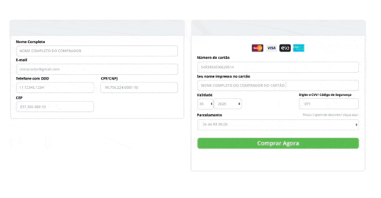 No formulário de compra, preencha seus dados atentamente, escolha a forma de